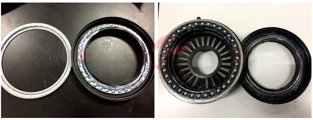 平麵軸承安裝於減震器的頂端,位於彈簧和減震器頂膠之間,它要承受上下的壓力還能自由轉動。